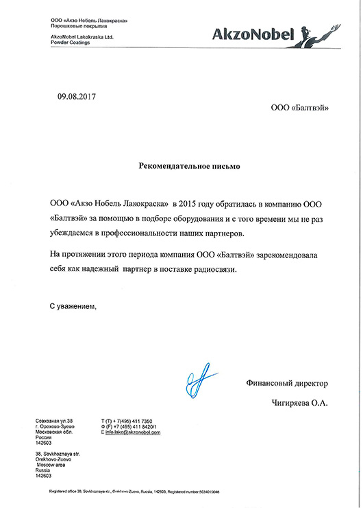 Рекомендательное письмо Акзо Нобель Лакокраска