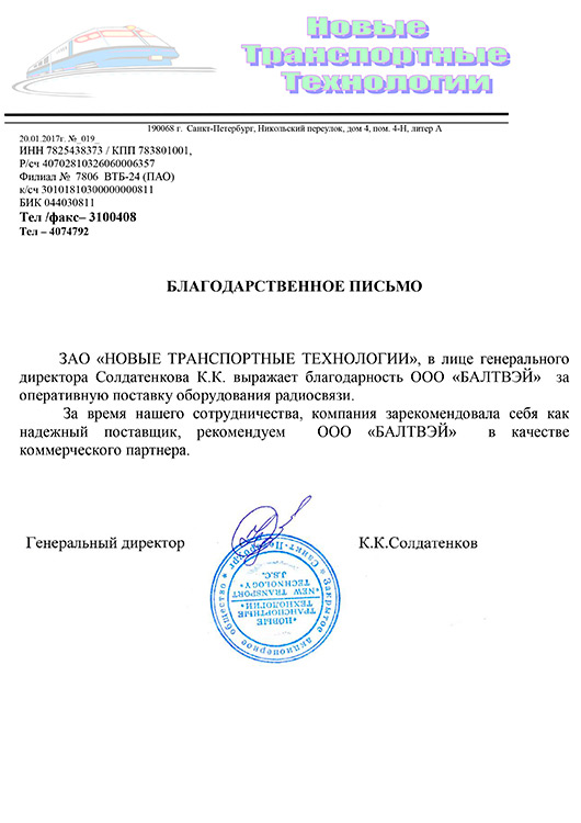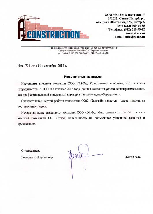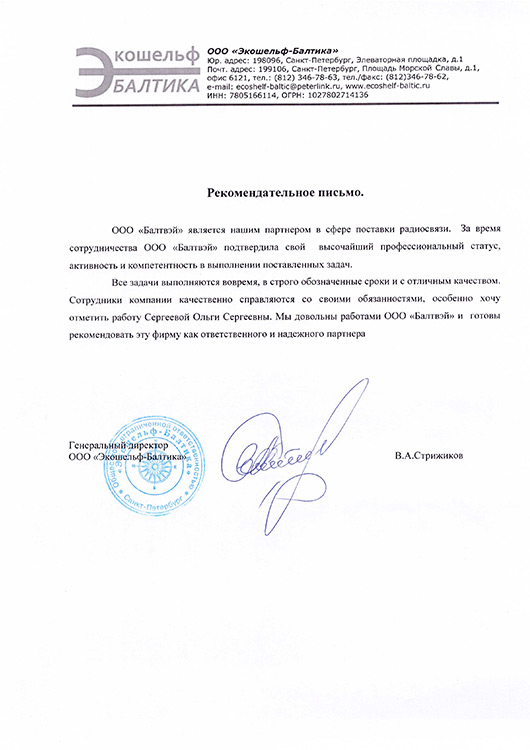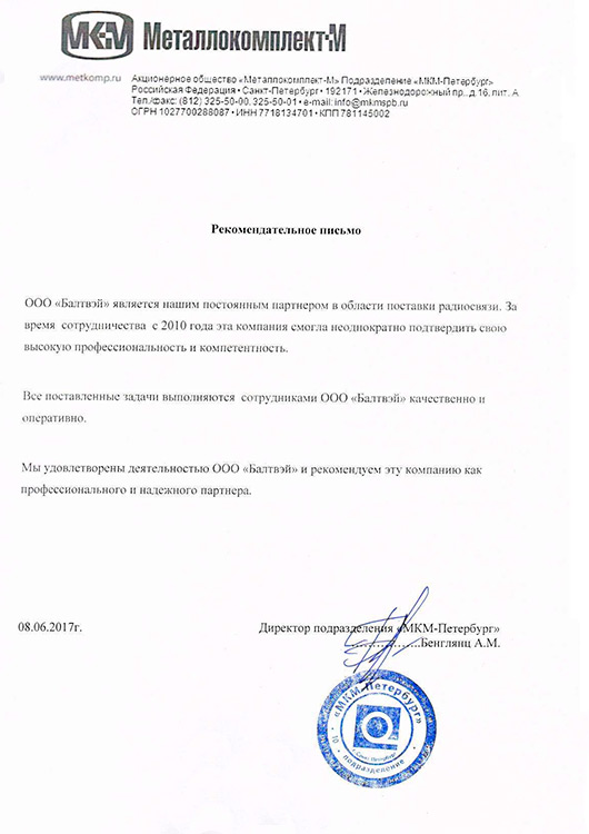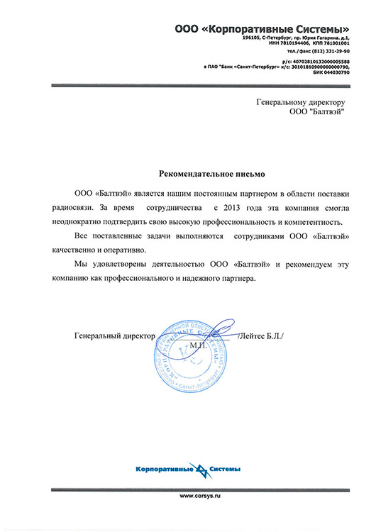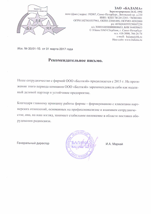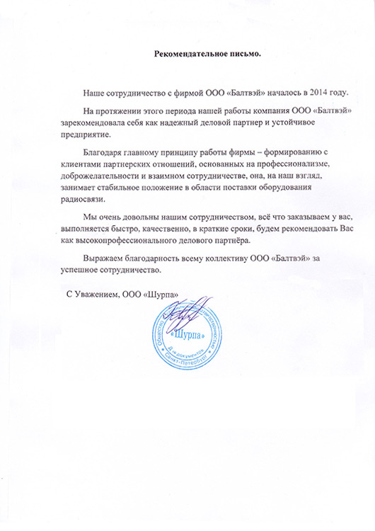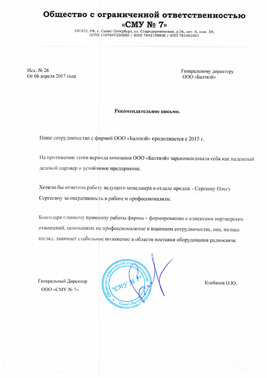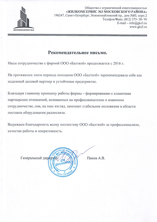 Рекомендательное письмо Жилкомсервис 3 Московского района