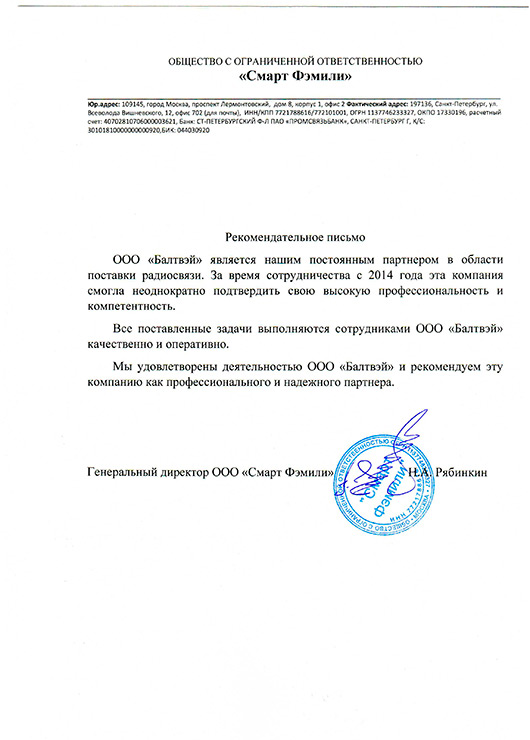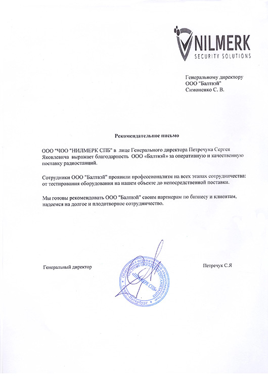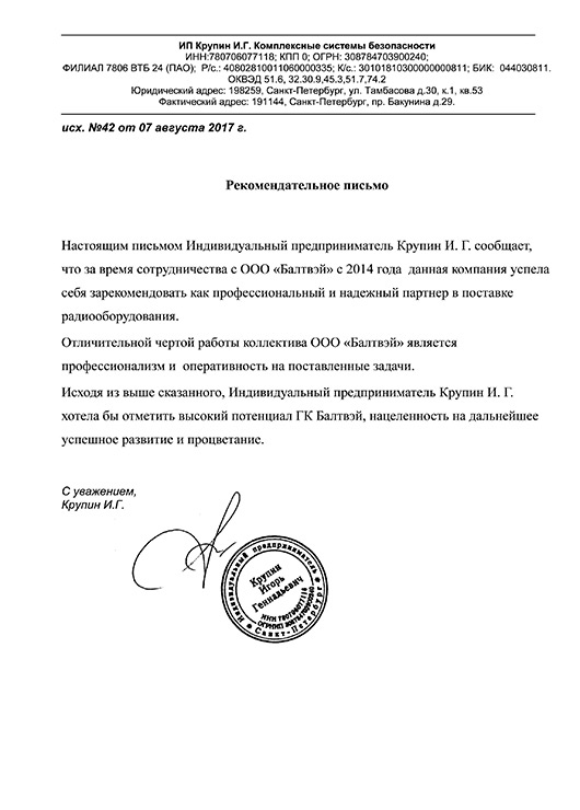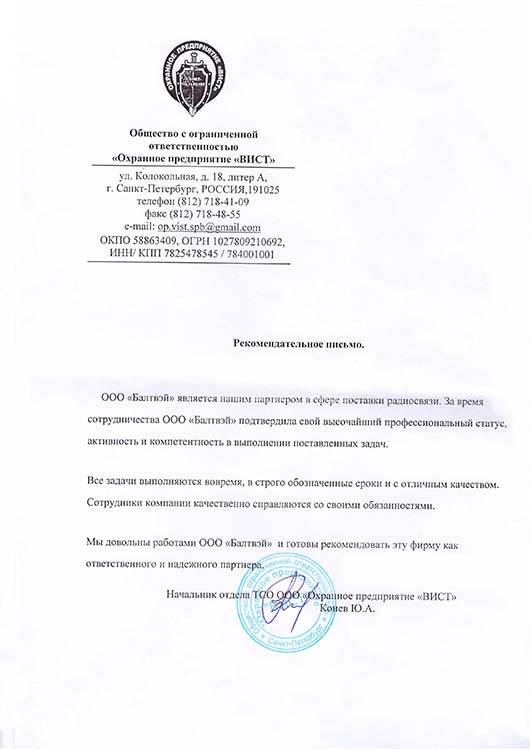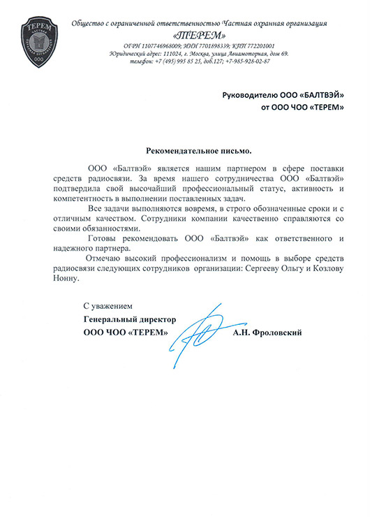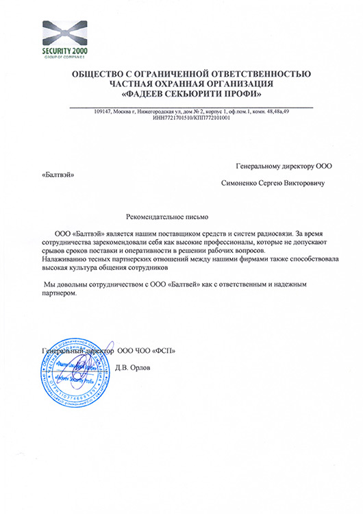 Рекомендательное письмо Фадеев Секьюрити Профи