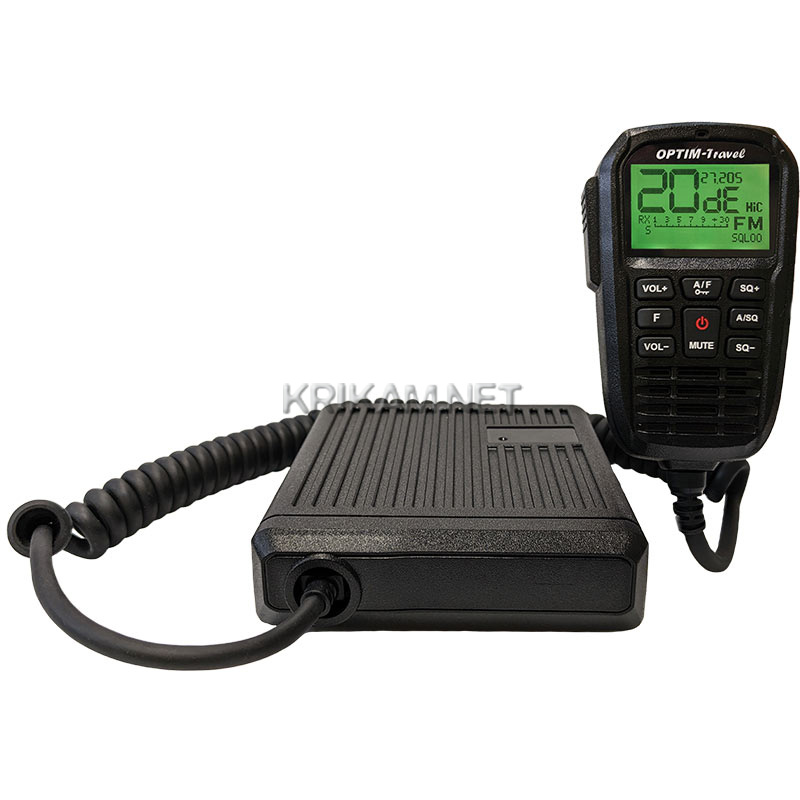 Автомобильная радиостанция OPTIM-Travel - частотный диапазон работы рации 26965 - 27405 МГц. Все управление рацией осуществляется с помощью тангенты. На ней находятся дисплей и кнопки управления. Данная конструкция позволяет скрыть основной модуль рации в любое удобное место ( бардачок, тех. ящик и пр). Мощность радиостанции до 4 Ватт. Большой и яркий дисплей позволит настроить нужную частоту в любое время суток. Имеется кнопка быстрого перехода на 15 канал. Roger Beep ( сигнал окончания передачи) имеет 8 разнообразных вариантов.